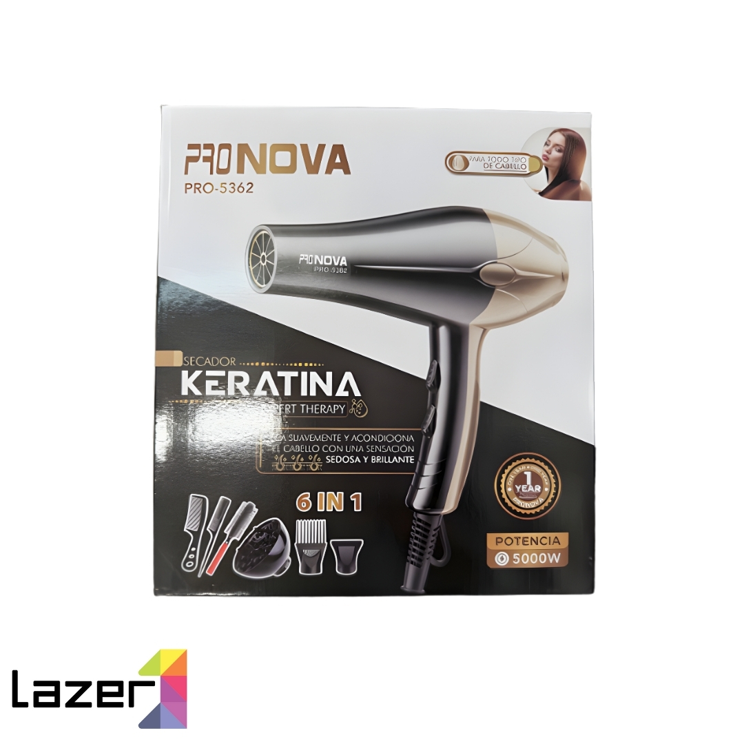 -Logra un cabello suave, brillante y sin frizz con el PRO NOVA PRO-5362, diseñado con tecnología Keratina Expert Therapy que protege y acondiciona cada hebra.